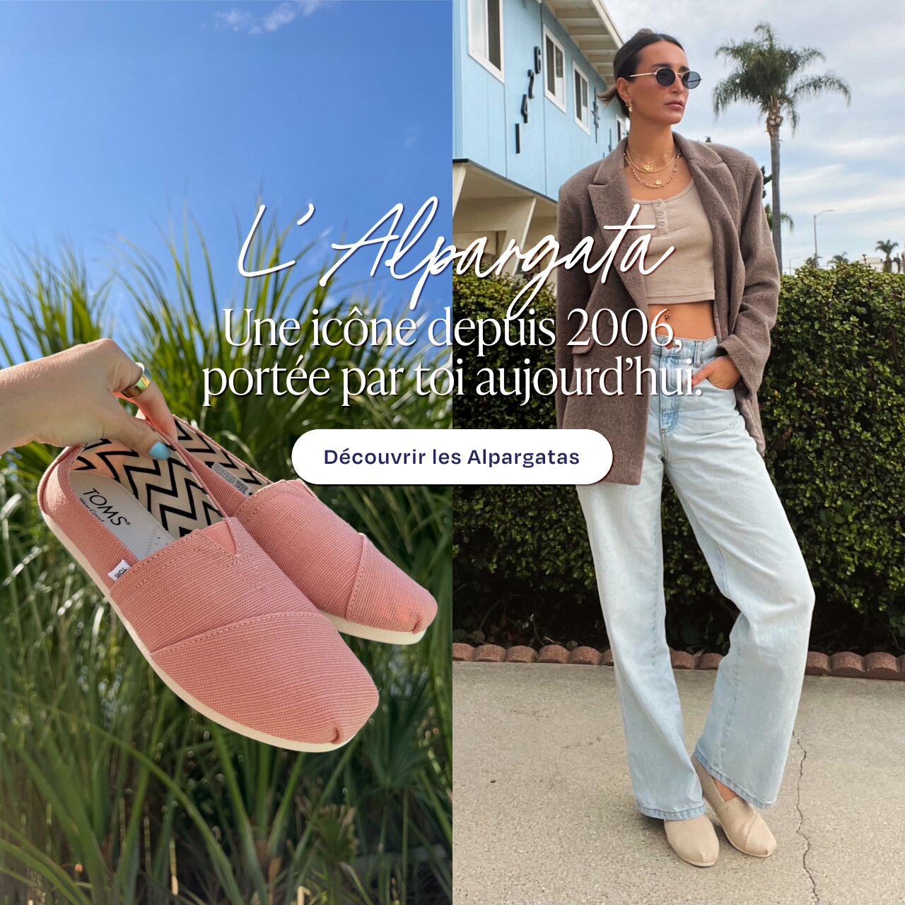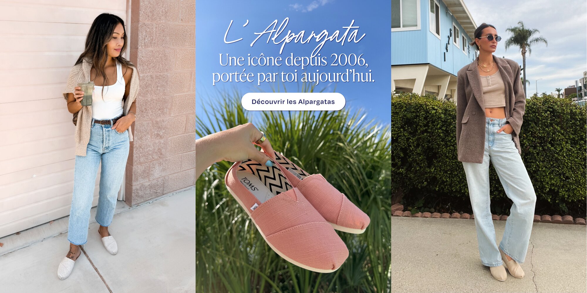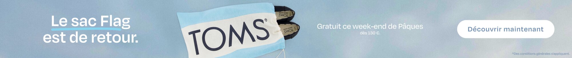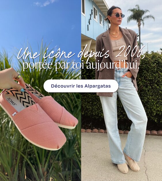 Avec TOMS, trouve l'équilibre parfait entre confort et style. Explore nos nouveautés pour hommes, femmes et enfants. TOMS, des pantoufles aux bottes : il y en a pour tous les styles. Nos Alpargatas classiques, confortables et antidérapantes. Un essentiel, quoi qu’il arrive.